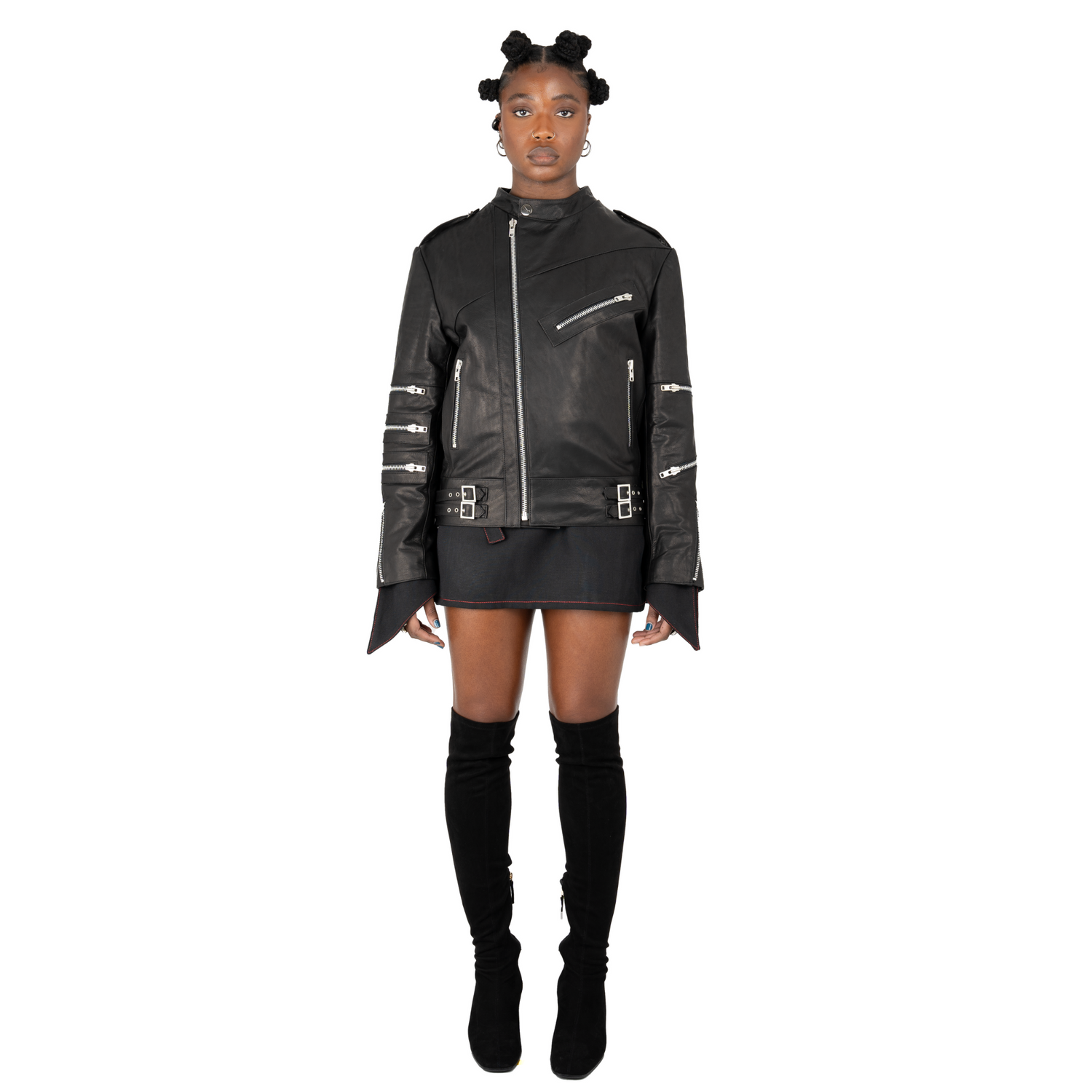 Nominal London Black Leather Biker Jacket - Feminine Style