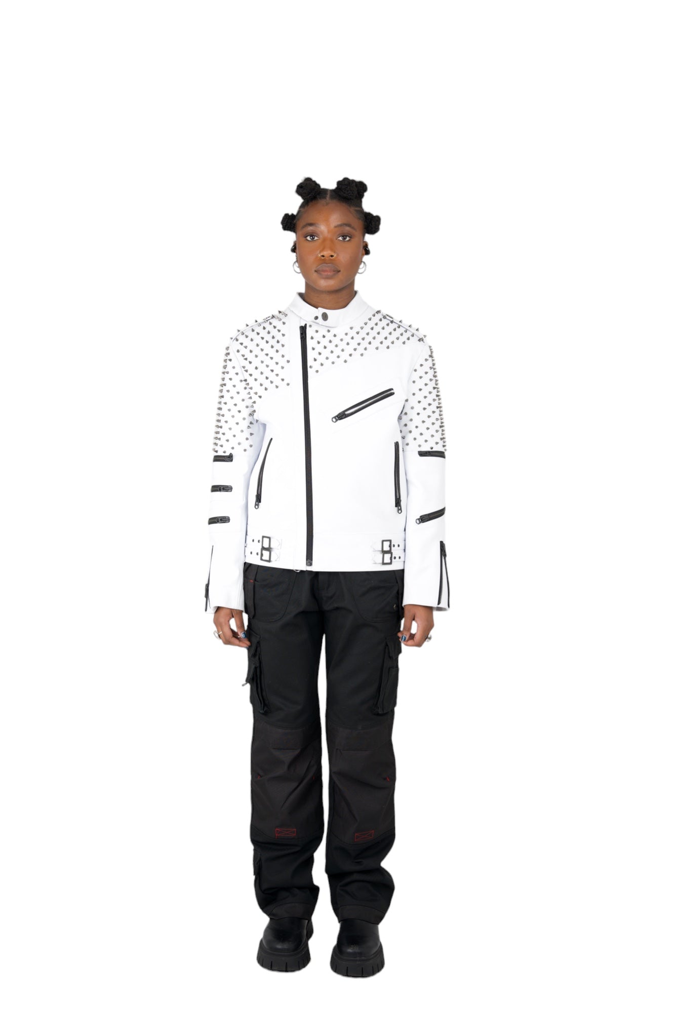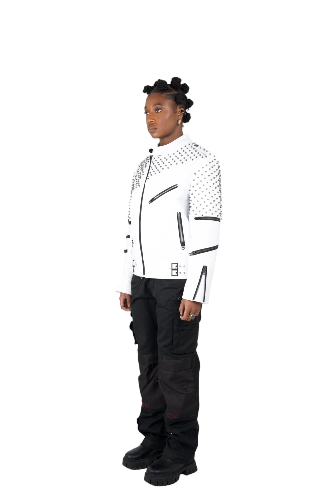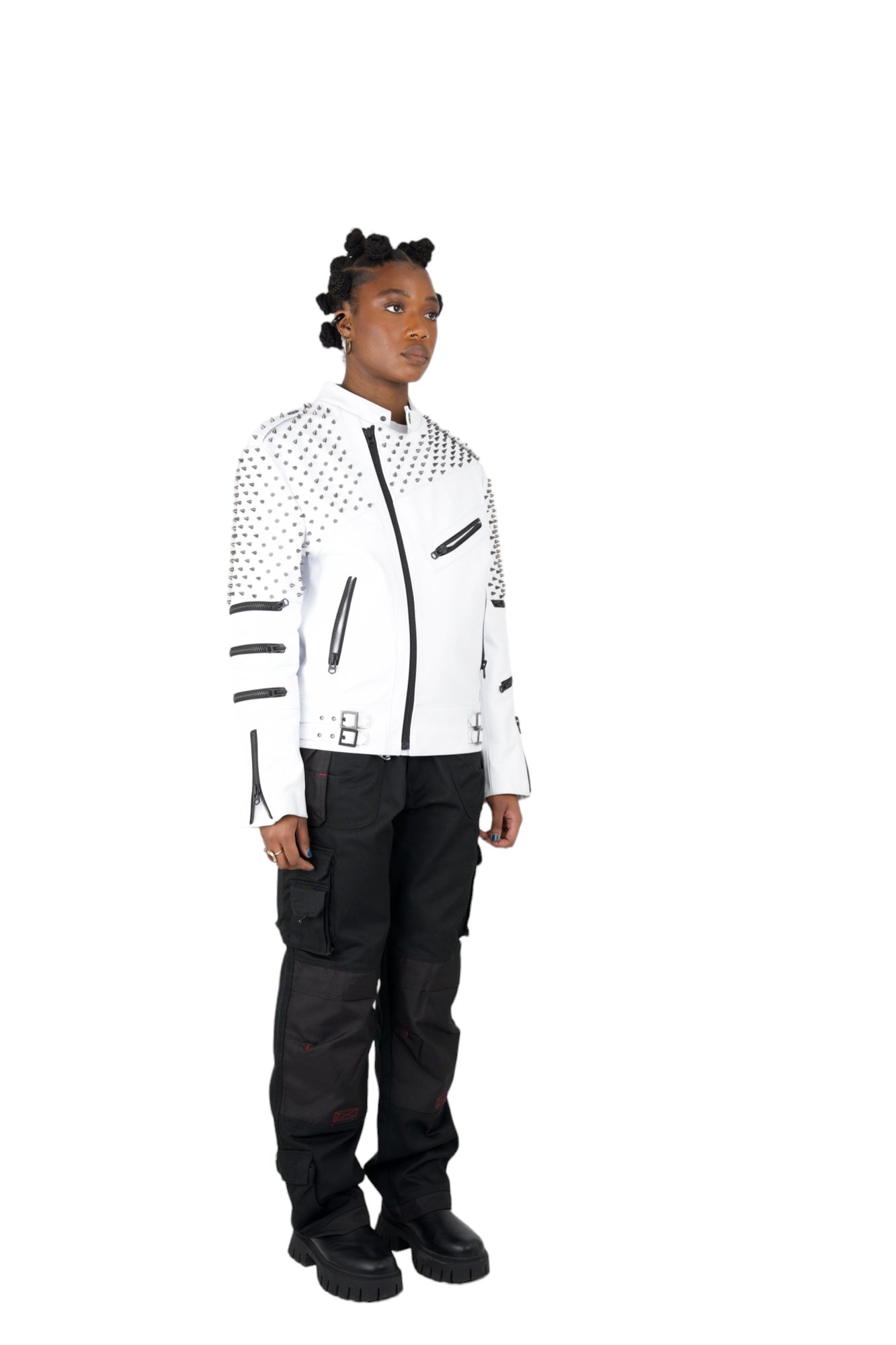 Nominal London White Leather Studded Biker Jacket