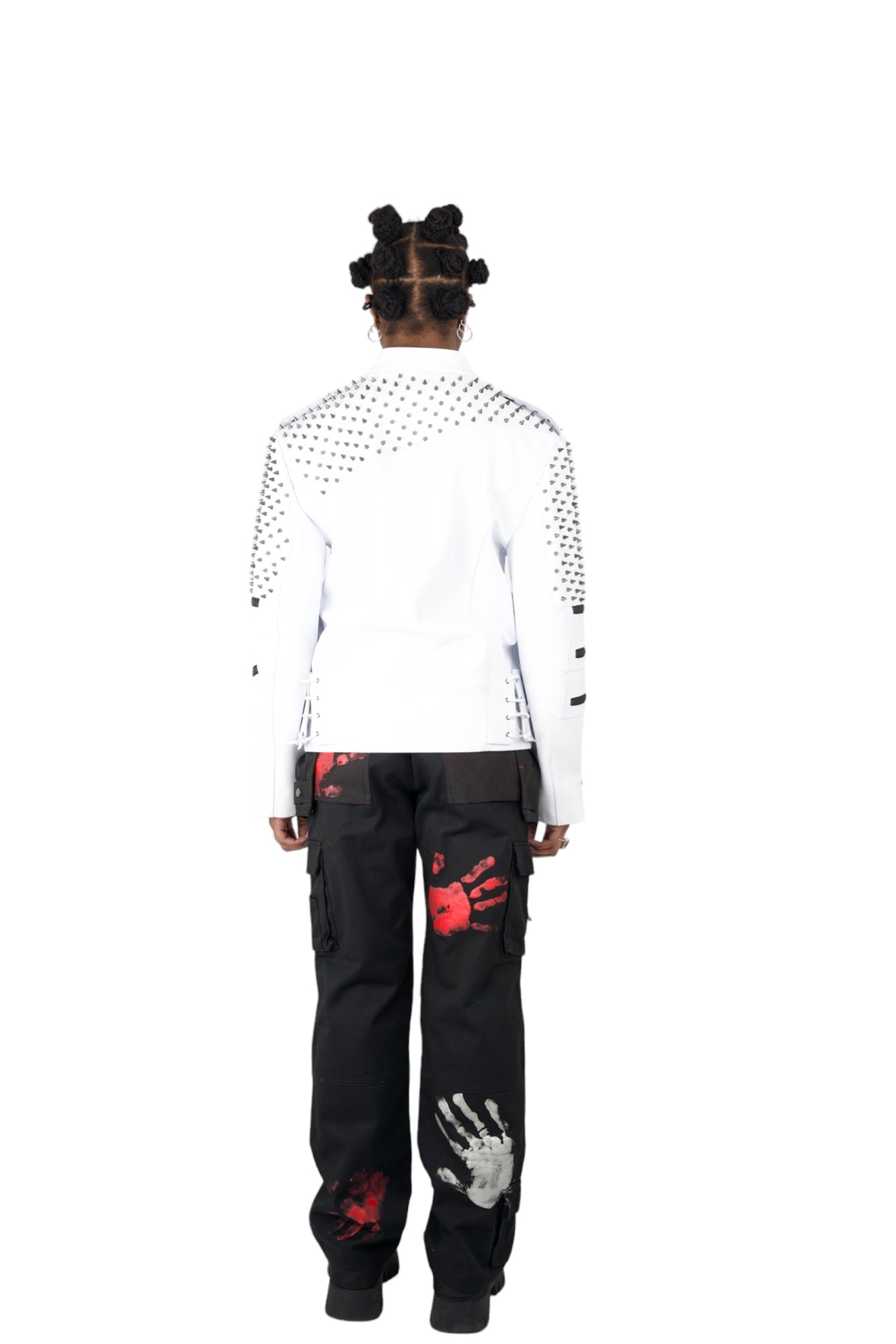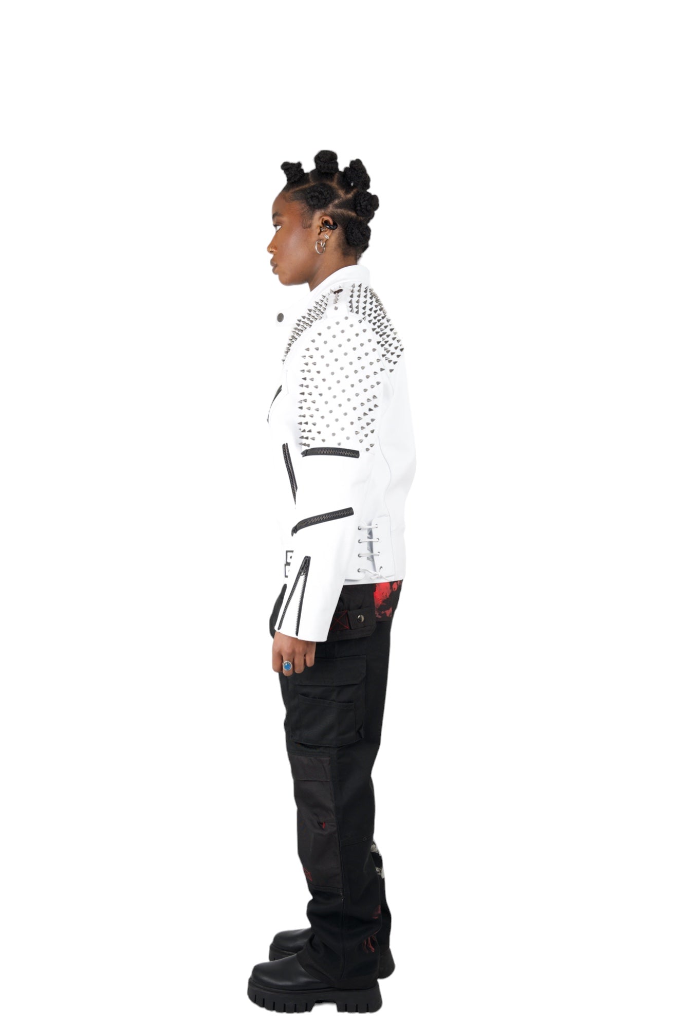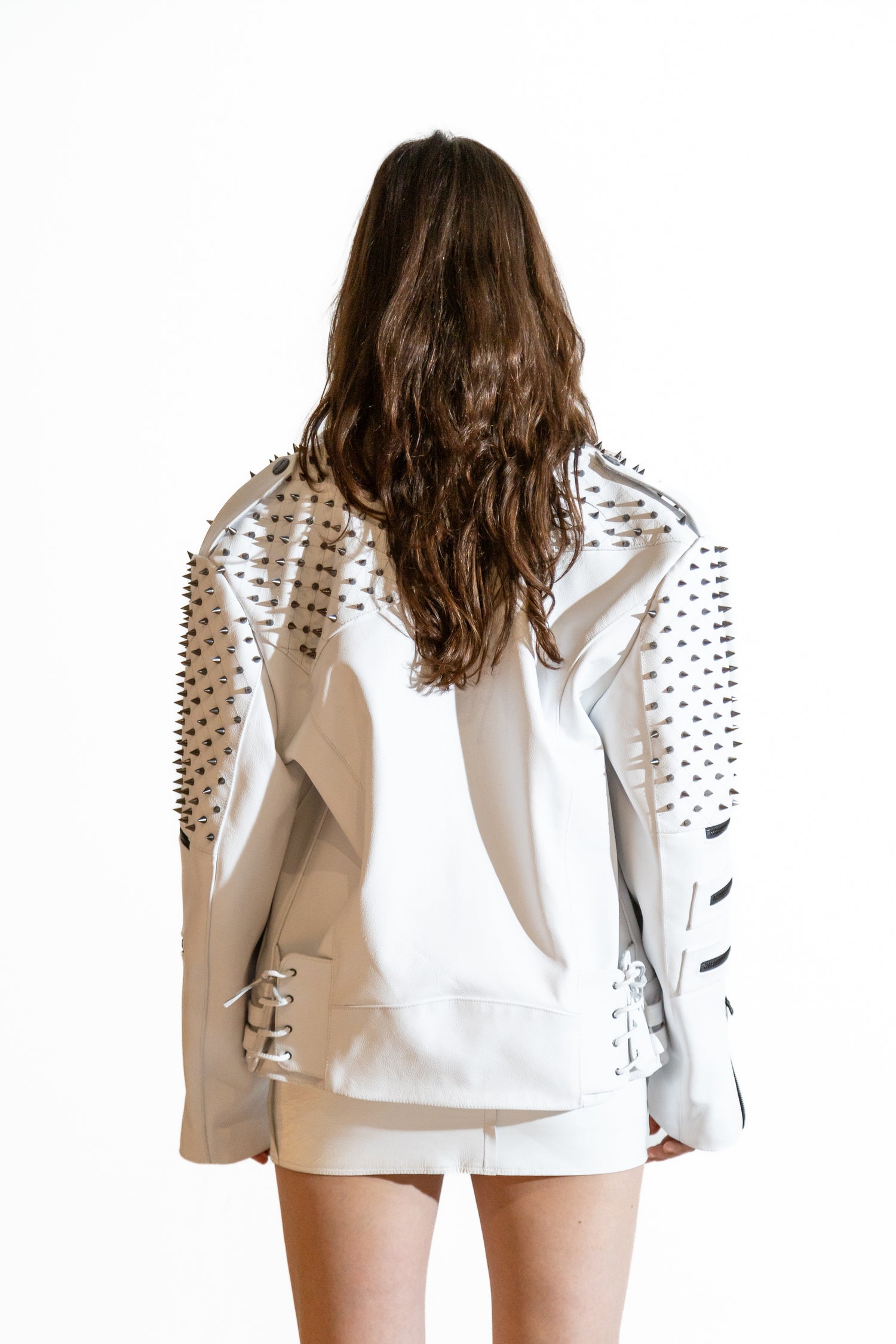 Nominal London White Leather Studded Biker Jacket