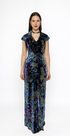 Elegant long soft velvet dress in parsley print with transparent inlays. Velvet 82% viscose, 18% silk.