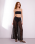 Step up your resort wear game with the Hortencia Cover-Up Trousers, a luxurious and stylish addition to your summer wardrobe. These elegant, flowy trousers are designed to provide both comfort and sophistication, making them the perfect companion for beach days, poolside lounging, or summer evenings. Adorned with small metal discs delicately scattered across the fabric, these trousers catch the light with every movement, adding a subtle yet captivating shimmer to your look.