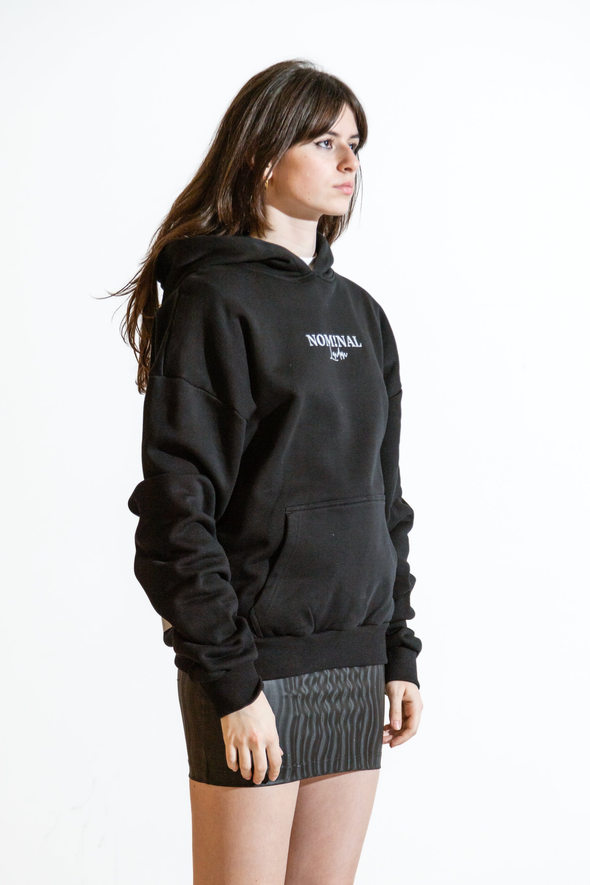 Introducing the Nominal London Black ICON Hoodie in Feminine Style, where comfort meets confidence. Crafted from premium 100% cotton, this hoodie offers a blend of softness and durability, ensuring it becomes your favourite piece in your wardrobe.