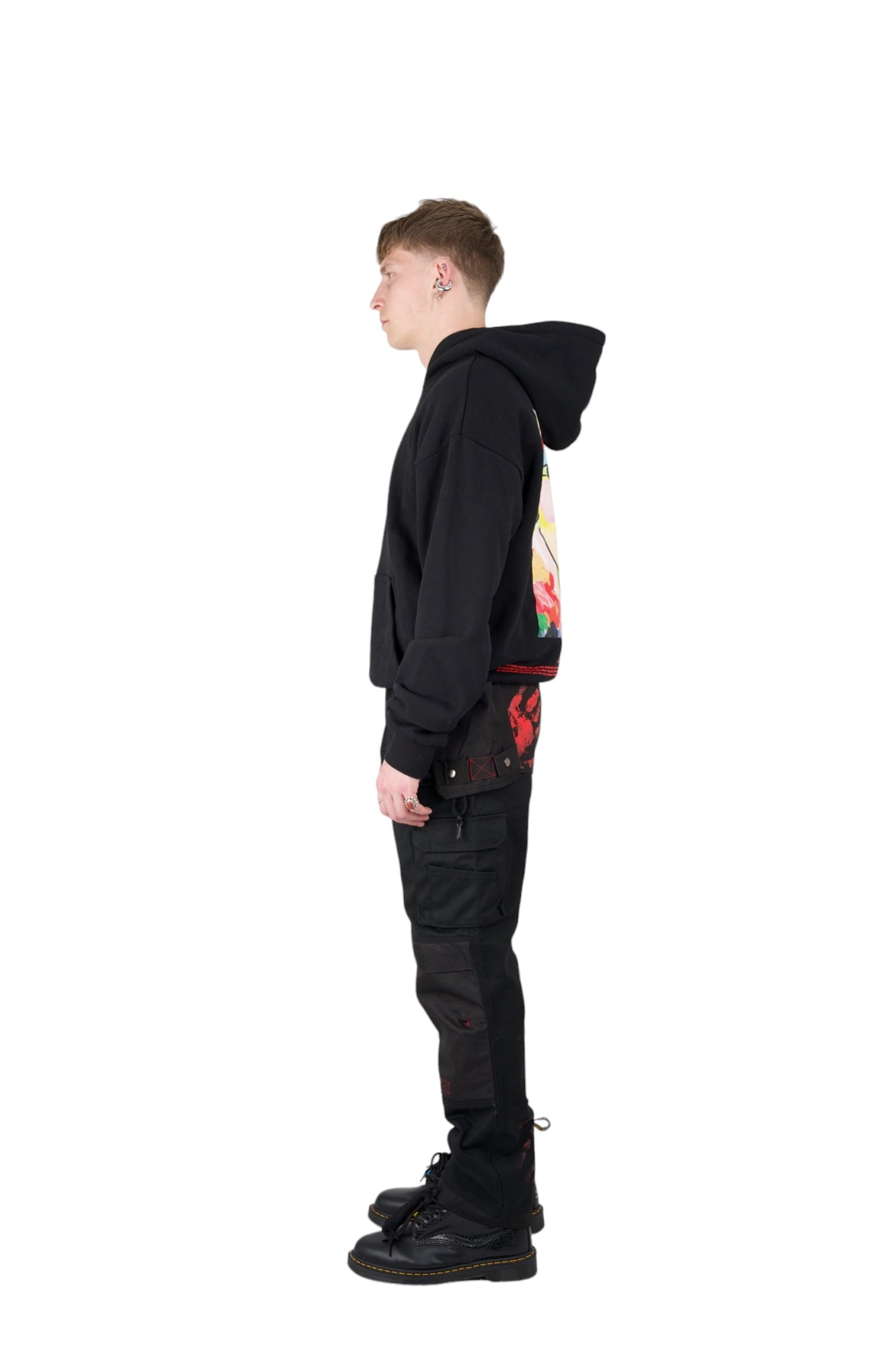 The Nominal London Handprint Cargo Pants are made from cotton mix canvas for a relaxed fit and feature the handprints of the Founders of Nominal London.