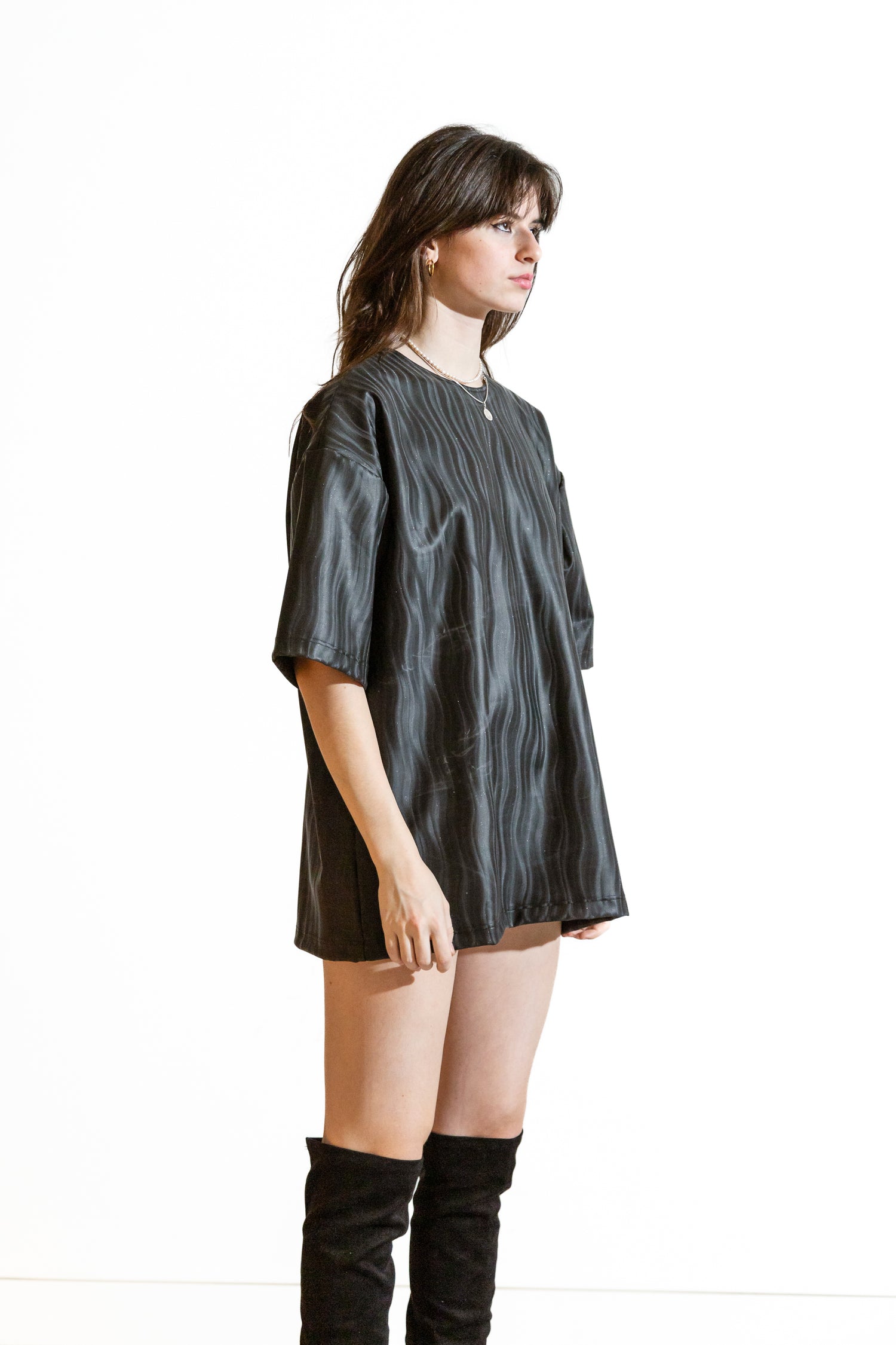 Nominal London Latex 'Wavey' Black T-shirt Dress Features: