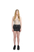 Indulge in the luxury of Nappa leather with the Nominal London Black Leather Mini Skirt. Crafted from sustainably sourced lamb leather, each skirt is a testament to quality and elegance. The sleek black finish is complemented by top-quality Riri zips, ensuring both style and functionality. Designed to fit snugly, it contours your silhouette gracefully, making it a versatile piece for any occasion.