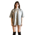 Introducing the Nominal London Silver T-Shirt Dress, a masterpiece of modern fashion that embodies both elegance and daring flair. Designed from cutting-edge latex-inspired fabric, this dress captures attention with its metallic silver hue and effortless silhouette. Whether worn solo for a striking look or layered with accessories for versatility, it promises to elevate your style game.
